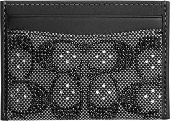 Gleaming crystals stand out against the signature logo jacquard that brands this convenient card case.