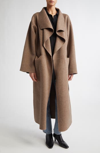 Draped lapels enhance the sculptural design of this cashmere-kissed wool coat with a hand-stitched, double-face construction that makes the interior as soft and warm as the exterior without the need for sewn-in lining.