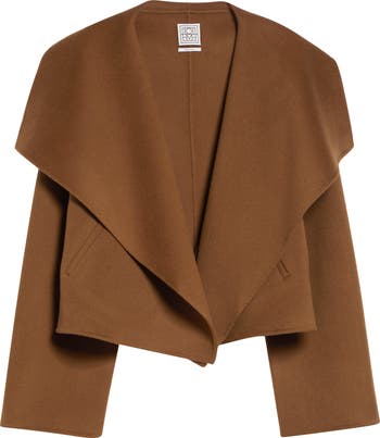 A dramatic shawl collar brings sculptural drape to this cropped take on the Scandi brand's cult-favorite coat. This version retains the same beloved double‑face construction as the original, keeping the interior just as soft and warm as the exterior—all without a sewn‑in lining.