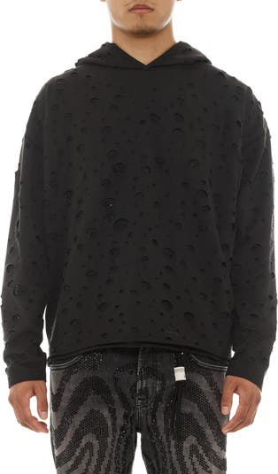 Made from midweight terry, this hole-covered hoodie serves rebellious, head-turning style and looks like it's seen you through plenty of wild adventures.