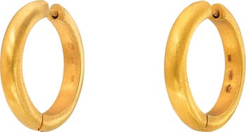 A brushed satin finish adds contemporary appeal to an everyday pair of huggie hoops crafted in the USA from gleaming 18-karat gold.