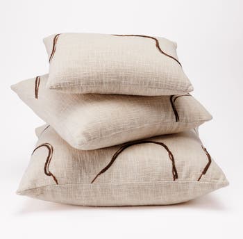 The SIGNATURE Pillow anchors a room with quiet artistry, balancing bold presence with refined restraint. Hand-drawn embroidered lines add organic rhythm, creating a statement of sculptural elegance in any setting Avoid using harsh detergents or abrasive cleaners. We want to highlight that each of our pieces is meticulously handcrafted in metal by skilled artisans. As a result of this authentic process, slight variations in tone, texture, and finish are to be expected across our products. These distinctions are not imperfections but rather a distinctive mark of true craftsmanship, reflecting the unique, handmade nature of your item.