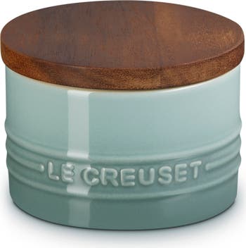 This attractive storage canister—topped with a tight-sealing acacia-wood lid that makes it easy to stack—is made from dense stoneware that helps regulate the temperature of its contents while blocking moisture and keeping them fresh. The raised, triple-ring logo design subtly brands the piece, and the nonstick, glazed interior makes it easy to clean.