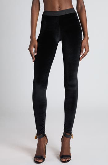 A logo-jacquard waistband brings signature style to these ultrastretchy velour leggings that are clingy in the best way.
