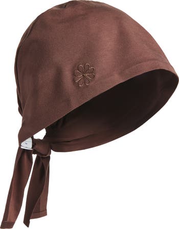 Build out your collection of essentials with this smooth and lightweight underscarf tied shut at the nape detailed with an embroidered flower stitched in tonal threads.