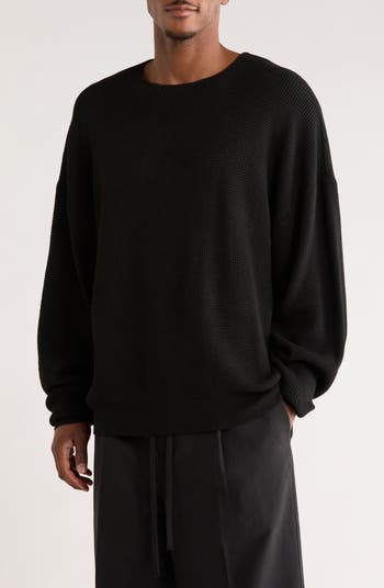 Fear of God Essentials Signature Waffle '90s Crewneck Sweatshirt, Main, color, Vintage Black
