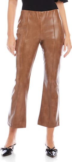 Exposed front seams accentuate the ankle-grazing silhouette of these sleek pants made from realistic faux leather.