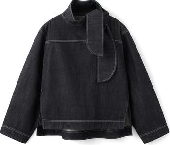 Dark-wash nonstretch denim adds an elevated feel to this slouchy top detailed with slits at the sides that further the boxy feel.