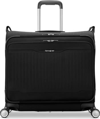 Tried and trusted since 1958, the Silhouette collection is a timeless classic rooted in our legacy. Weve updated the time-honored sleek luggage style by combining the distinct elements from our hardside but with the flexibility of a softside. Our spinner garment bag is made from 100% post-consumer recycled PET bottles, specifically engineered to endure rigorous travel. Perfectly proportioned interior pockets to keep your clothes neat and organized and multiple exterior pockets for easy access to travel essentials. A dual hanging bracket for effortless closet-to-bag transitions, and our patented EAZYHOOKTM to carry those last-minute grabs like your handbag.
