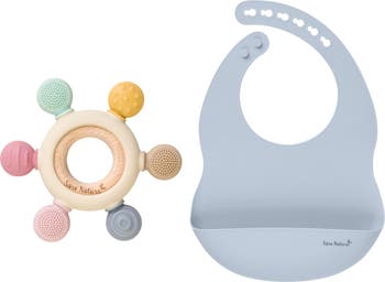 This bib and teether set combines mealtime practicality with soothing comfort for little ones.
