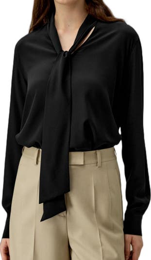 The Silk Bowtie Blouse exudes elegance with its 100% Silk Crêpe de Chine fabric. The deep V-neck and shirt-style sleeves offer a sophisticated, professional look, while the versatile bowtie detail adds a feminine touch. Pair it with trousers for the office or with a long skirt for a more graceful, feminine appearance.