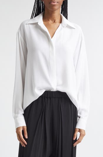 This ever-essential, oversized shirt reimagined in drapey silk georgette is tailored yet relaxed, with a concealed-button placket for added polish.