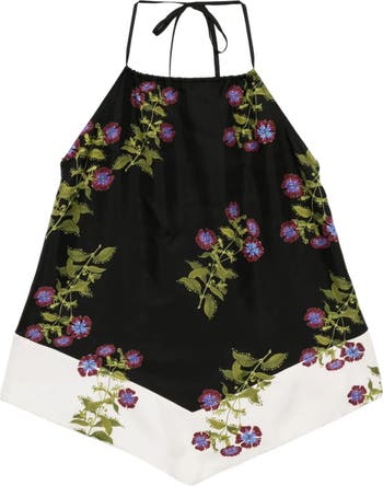 A Bouquet You Can Wear. This Silk Halter Top Features An Open Back And Adjustable Tie Detailing — Lightweight And Elegant.