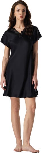 This exquisite nightdress enchants with its delicate lace collar, captivating short sleeves, and attention-grabbing high slit. The pure silk fabric caresses your skin like the softest silk, draping lightly around your body and delivering unparalleled comfort.From any perspective, this nightgown is worth it. From any perspective, this nightgown is worth it.