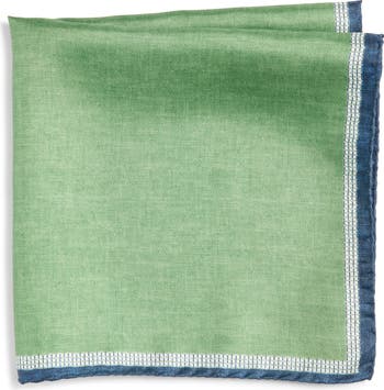 A loose silk weave patterned with contrast trims brings casual elegance to a pocket square that adds polish to any semiformal look.