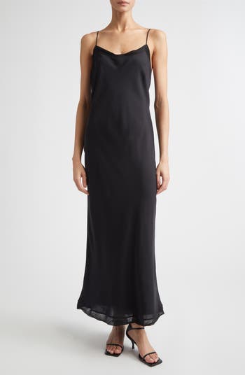 TOTEME tilts its trademark Scandi minimalist into nocturnal territory with this glossy silk-satin slipdress winked with an artfully twisted band of sheer tulle along the neckline.