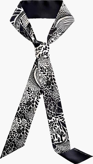 Silk Skinny Scarf Of Black Garden