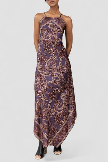 For Queens. Crafted from our signature snake print, this dress is a luxury statement piece. The Serpent has a hypnotizing pattern & S curves. It also represents rebirth and immortality. Light as air and fluid in movement, this dress is ideal for a daytime wedding party, brunch, or elevated gathering. Complete the look with high heel sandals, some boots or flats. This piece is made from 100% silk fabric. Designed for lounging and dancing. Created for the "El Thoban" Collection which evokes a mood of opulence, rebirth and seduction.Made in New YorkSize & FitFits True to size.Model wears Size SMeasurement GuideSmall: Waist: 24-28 inches.Medium: Waist 28-32 inches.Large: Waist 32-36 inches.