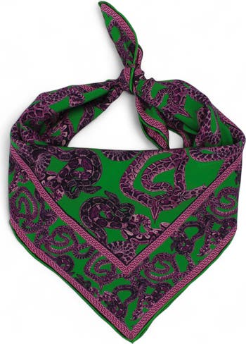 For Queens and Kings. A playful and statement piece created with our very own digital design “Serpent” Print. The Serpent has a hypnotizing skin pattern & S curves. It also represents rebirth and immortality. This piece is made from 100% silk fabric. It can be worn as a scarf over the head or around the neck.