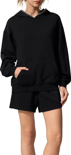 Where comfort meets quiet luxury. The Seamflow Douceur Hoodie is made with our signature SILKERRY™ fabric—silky on the inside, sleek on the outside, and perfectly breathable in between. The oversized cut and drop-shoulder shape bring ease to every gesture, while thoughtful accents like the blanket-stitched hood and ribbed cuffs add a soft sense of structure. Whether layered over leggings or lounged in solo, this hoodie wraps you in softness, intention, and ease.