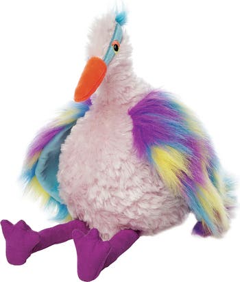 Spark your kiddo's imagination and encourage emotional intelligence with this snuggly-soft bird plushie with a slightly understuffed body wrapped in colorful faux-fur plumage. A lightly weighted bottom helps it sit unassisted.