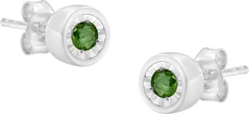 Silver 0.15 Ct Green Diamond Miracle- Stud Earrings