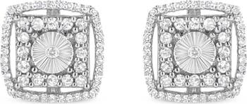 Silver 1.0 Ct Round Diamond Double Halo and Disc Stud Earring