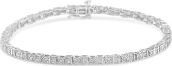 Silver 1.0 Cttw Diamond Round and Square Station Tennis Bracelet