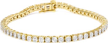 A refined take on a classic tennis bracelet, this design pairs vintage-inspired detailing with a clean, modern silhouette for everyday polish. A continuous line of rustic diamonds sits within faceted round bezel frames that create an illusion of greater size and brilliance while maintaining a sleek, low-profile look on the wrist. The organically toned stones offer soft, character-filled sparkle rather than a uniform flash, giving the piece depth and individuality that feels authentic and artisanal. The bracelet is crafted in solid .925 sterling silver and is available in three elevated metal expressions polished sterling silver, 10K rose gold plated sterling silver, or 10K yellow gold plated sterling silver, allowing you to choose the finish that best complements your style. The flexible, well-engineered links drape comfortably around the wrist, while a secure box clasp with safety latch provides confidence in wear. This 1.0 cttw diamond tennis bracelet strikes the perfect balance between understated luxury and everyday versatility, making it an effortless staple that transitions beautifully from day to night.