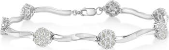 Silver 1.0 Ctw Diamond Cluster Miracle-Set Station & Twisted Bar Tennis Bracelet