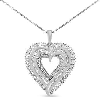 Feminine and sophisticated, this beautiful silver cluster heart necklace makes a timeless gift for yourself or someone special. Crafted from genuine .925 sterling silver and offered in either a classic silver finish or a radiant 14K yellow gold plated version, this pendant is designed to maintain its shine for years to come. The 1 1/2 c.t. heart is adorned with a captivating composite of natural round and baguette cut diamonds that create an alluring sparkle from every angle. Suspended from an 18 inch sterling silver box chain for a secure and graceful fit, this necklace blends elegance, sentiment, and enduring style in one stunning piece.