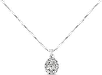 Silver 1 1/2 Cttw Diamond Oval Cluster Pendant Necklace