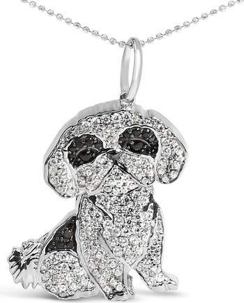 Silver 1 1/4 Cttw Diamond Shih Tzu Dog Pendant Necklace 18 inch