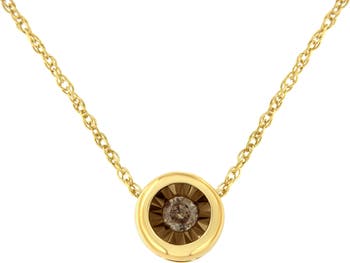 Enjoy this delicate pendant necklace featuring a single miracle set diamond in a bezel setting. This delicate necklace is crafted in two-tone sterling silver and has a total diamond weight of 1/10 carats.