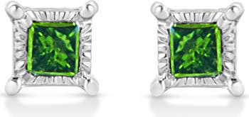 Silver 1/10 Ct Miracle Princess Green Diamond Stud Earrings