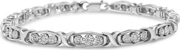 Haus of Brilliance Silver 1/10 Cttw Diamond Miracle Set 3 Stone Link Bracelet, Main, color, White