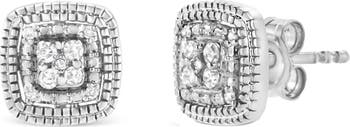 Silver 1/10 Cttw Diamond Square Shape with Milgrain Halo Stud Earrings