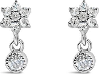 Silver 1/10 Cttw Diamond Star Stud with Bezel Drop Dangle Earrings