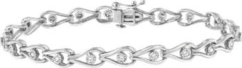 Silver 1/10 Cttw Miracle-Set Diamond Pear Shape and Bezel Link Bracelet