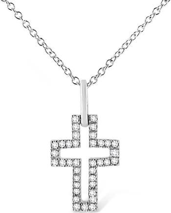 Silver 1/10 cttw Pave-Set Round-Cut Diamond Open Cross Pendant Necklace