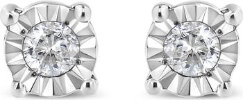 Add a shimmering touch to your look with these polished diamond studs crafted in sterling silver plated with white rhodium or finished with 10K rose or yellow gold electroplating. Each earring features a miracle plated round diamond that creates the appearance of a larger stone and enhances its sparkle for maximum brilliance. The diamonds are J K in color with I3 clarity, so they have visible inclusions that add character while still offering bright, eye catching shine. These classic studs bring effortless style to any outfit and make a versatile addition to your everyday jewelry lineup.