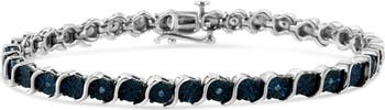 Silver 1/10 Cttw Treated Blue Color Diamond Miracle Plate "S" Link Tennis Bracelet