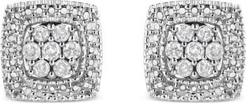 Silver 1/2 Ct Diamond Miligrain Square Shape Stud Earrings