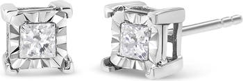 Silver 1/2 Ct Diamond Miracle Princess Solitaire Stud Earrings