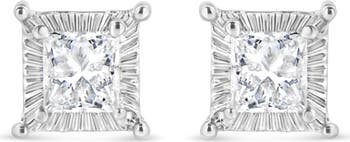 Dazzle with these unique miracle set diamond studs. This authentic design is crafted of real 92.5% sterling silver that has been electro-coated with genuine rhodium (a platinum-family metal), a precious metal that will keep a tarnish-free shine for years to come. Princess-cut diamonds are the centrally set stones, and smaller round-cut diamonds line the inner edges of these earrings. These 1/2 cttw studs are perfect accessory for your everyday wear.