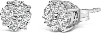 Silver 1/2 Ct Prong RoundDiamond Cluster Stud Earring