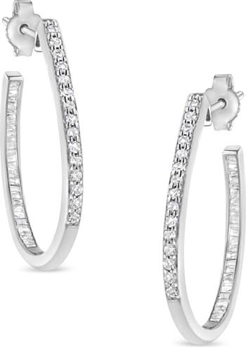 Silver 1/2 Ct Round and BaguetteDiamond Inside-Outside Hoop Earrings