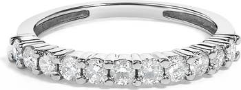 This classic and elegant Sterling Silver band ring boasts a 1/2 carat of beautiful, natural diamonds. Eleven round-cut diamonds embellished in a prong setting sit on top of this glimmering white silver band. This is a timeless piece that you will want to add to your jewelry.