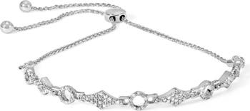Silver 1/2 Cttw Diamond Alternating Circle and Kite Link Adjustable Bolo Bracelet