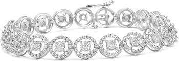 Silver 1/2 Cttw Diamond Nested Circle Miracle Set Open Wheel Link Bracelet